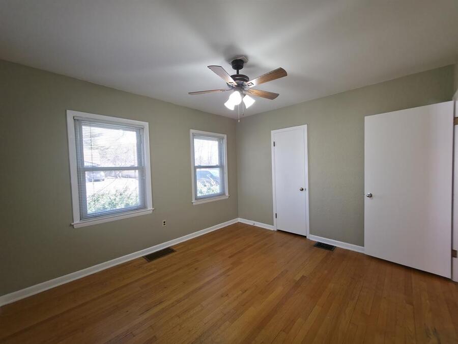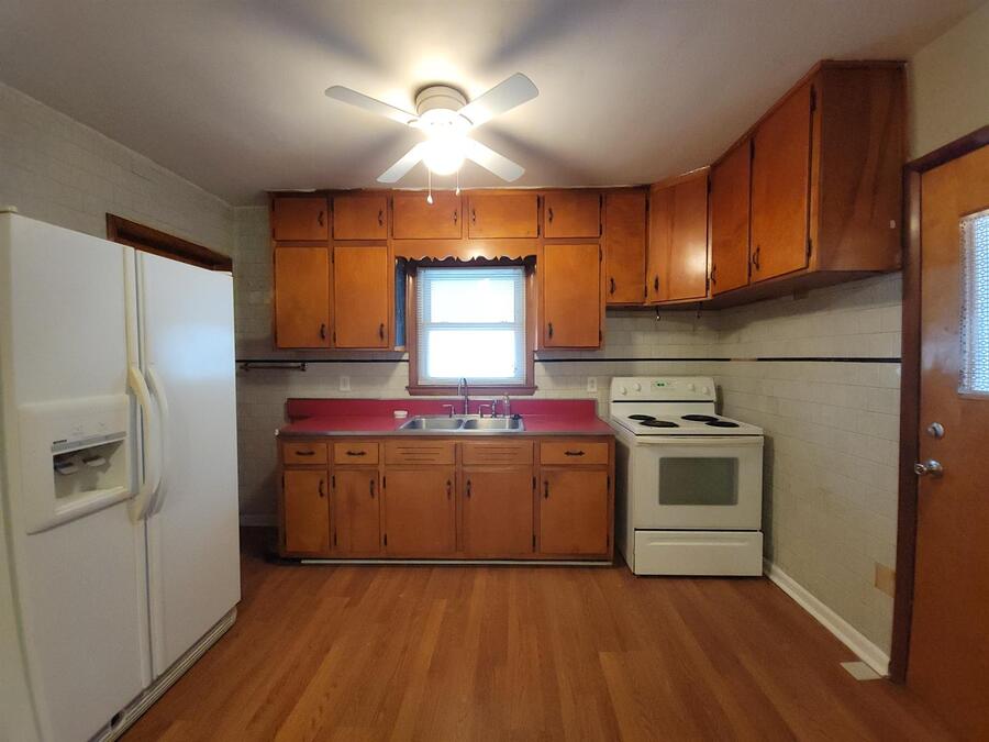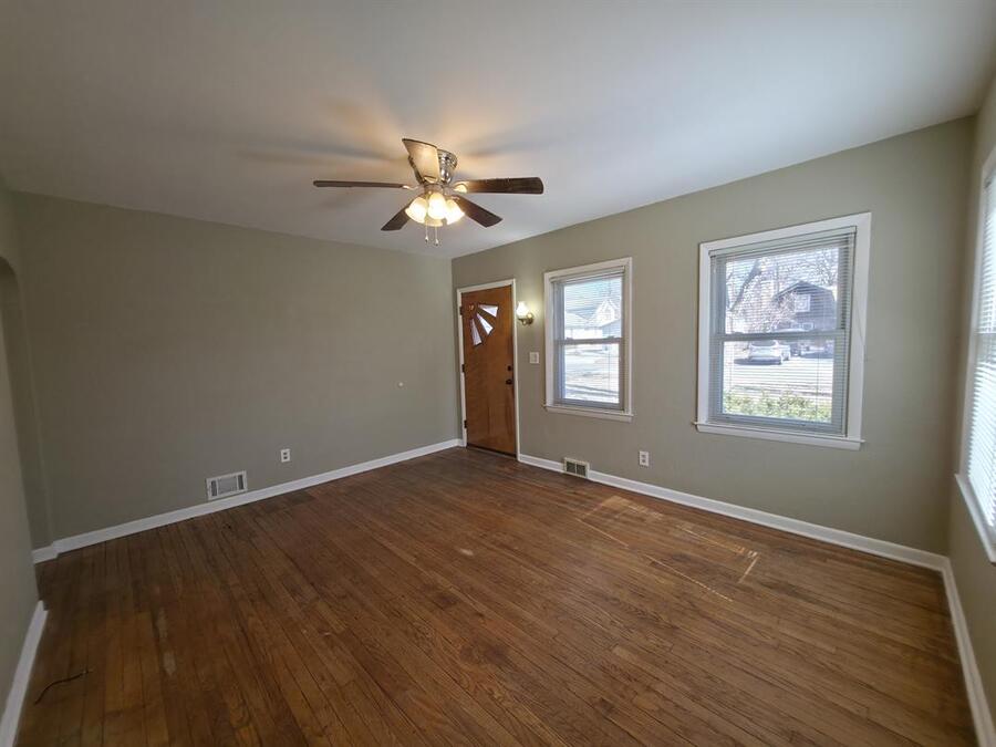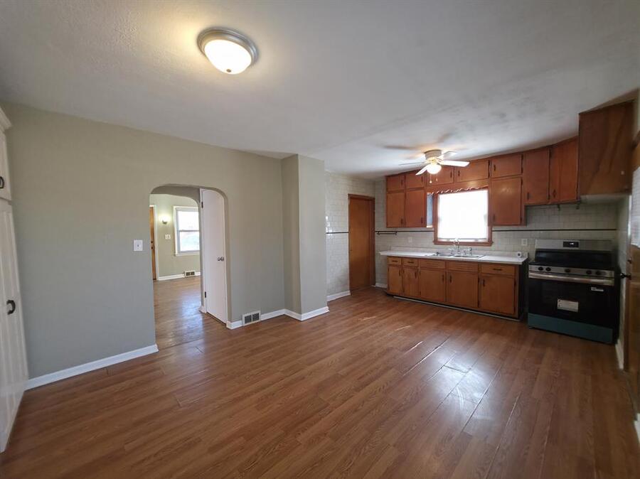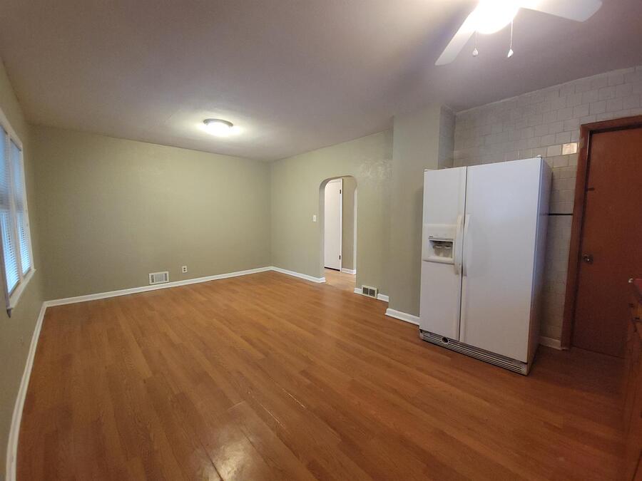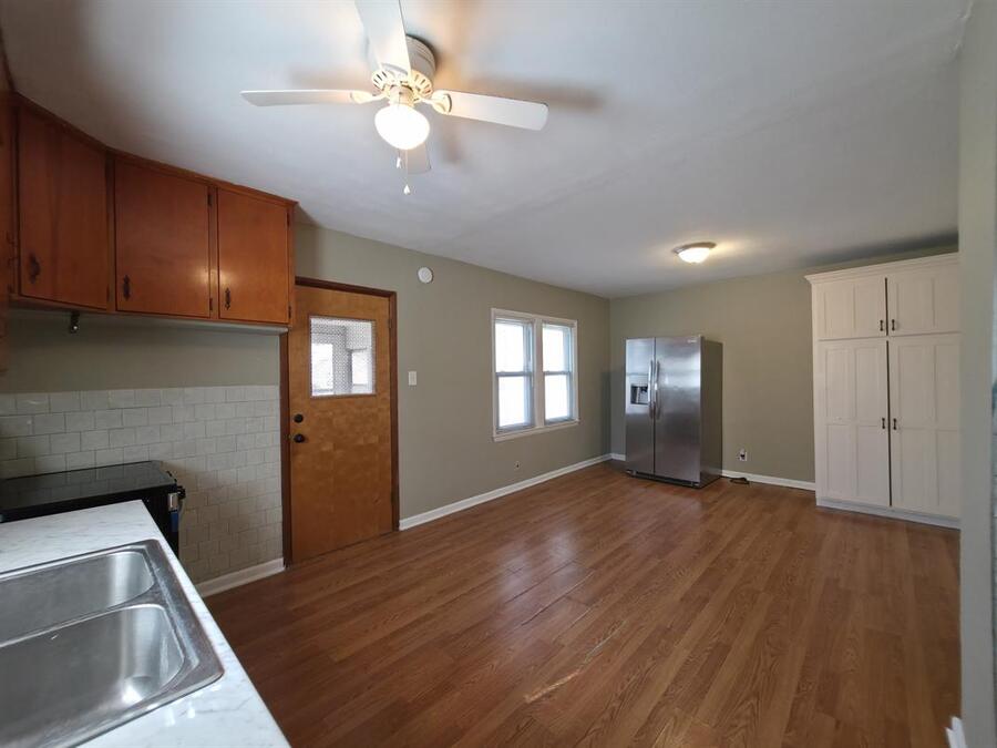 This beautifully updated 3-bedroom, 1-bathroom home offers a bright and inviting living space with freshly painted trim, doors, and windowsills. Enjoy stunning hardwood floors throughout the living area, hallway, and bedrooms, complemented by an open dining area and kitchen with LVP flooring. The kitchen boasts great cabinet space, a stylish tile backsplash, a ceiling fan, and backyard access.