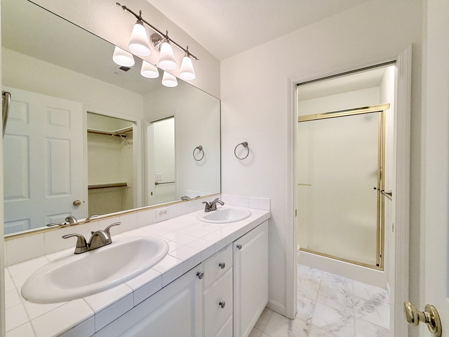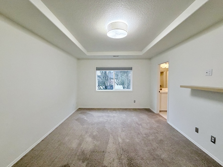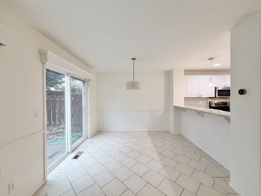 The dining area offers convenient access to the backyard, creating an easy transition for daily use or hosting. Upstairs, the primary suite includes coved ceilings, dual sinks, and a spacious walk-in closet.
