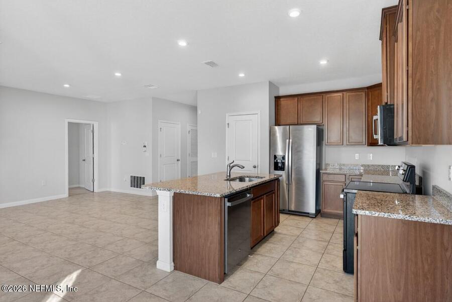 Welcome home to this beautiful 3-bedroom, 2-bath ranch located in the desirable Panther Creek subdivision, built in 2022. From the moment you step inside, you'll appreciate the spacious open floor plan that's perfect for both everyday living and entertaining. The fully equipped kitchen features stainless steel appliances and offers plenty of space to prepare family meals. The private owner's suite is a true retreat, complete with an open en-suite bath featuring dual sinks, a separate shower, and an oversized walk-in closet with ample storage. Two additional bedrooms are thoughtfully situated on the opposite side of the home, providing privacy for family or guests. Enjoy all the community amenities Panther Creek has to offer, including a clubhouse, swimming pool, playground, and scenic nature trail.