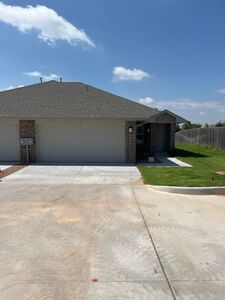 Beautiful brand new 3 bed, 2 bath home. 2 car garage with opener. Front yard sprinkler, front yard mowing/landscaping maintenance included in rent. Home Features an oversized utility room with shelving, a nice pantry and a large kitchen island. Open concept floorplan with dining/living. Tenant responsible for back yard maintenance. Call (405) 413-3406 for a chance to view this home! www.spsokc.com