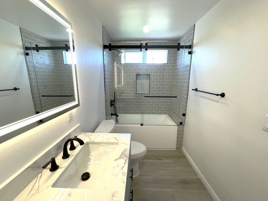Welcome to 14533 Lyle St, a beautifully new ADU in Sylmar. Featuring 12 ft vaulted ceilings, the living room feels open and airy, perfect for relaxation. This property includes two elegant bedrooms and two modern bathrooms, with the master suite offering a luxurious soaking tub and his-and-hers vanity.