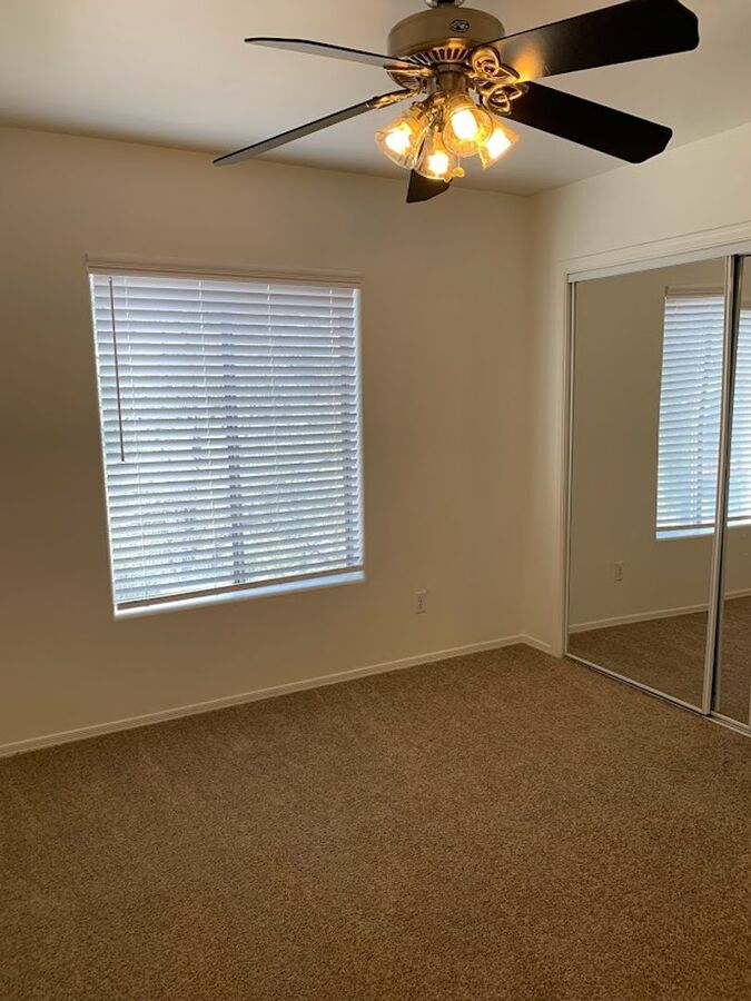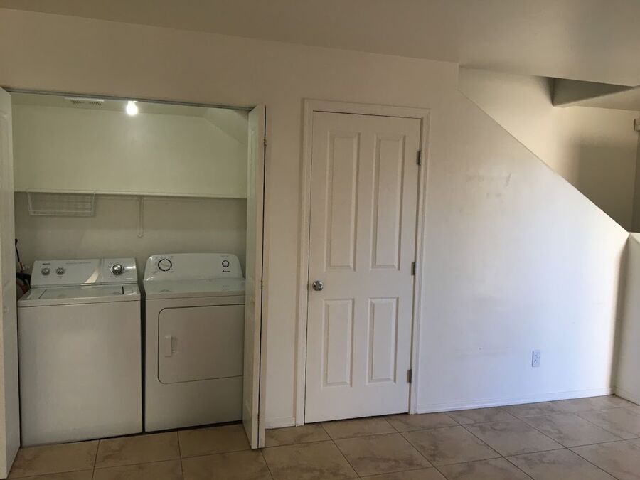 Waiting for you to make it your home! This is a beautiful open styled 2 story 2-bedroom, 2-bath Townhome that is 1,200 sq. ft., with both bedrooms located on the 2nd floor. The master bedroom comes with a HUGE walk-in closet with shelving! The upstairs bathroom includes a garden tub! Your new home also includes a FULL-SIZE washer and dryer, ceiling fans throughout, dishwasher, built-in microwave, gas fireplace, and two reserved covered parking spots.