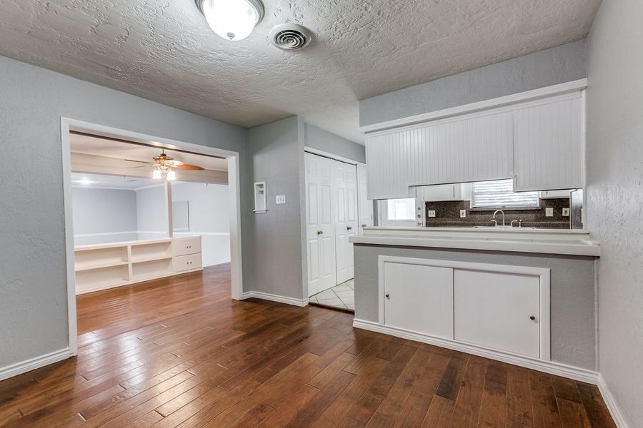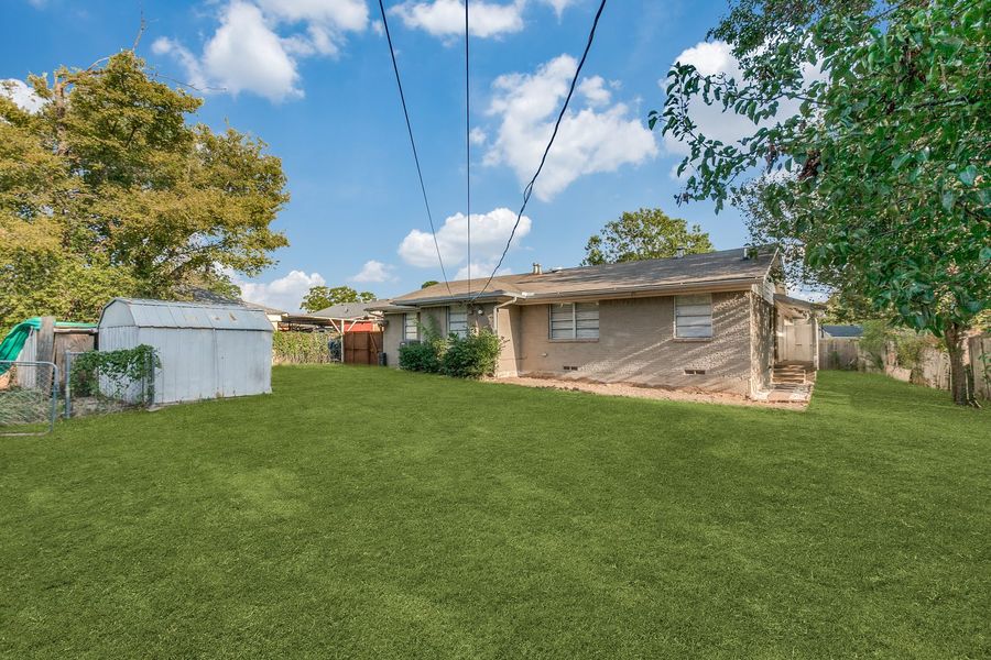 Located just south off Miller Road in South Garland, this Garland, 1-story house offers ample space throughout! The extended living room comes with french doors that access the driveway; an awesome added convenience! The primary bathroom features a luxurious walk-in shower & tile backsplash. The kitchen provides all the necessary kitchen appliances as well as a separate laundry room making that chore a breeze. The deck to the backyard offers a covered sectioned, 2 sheds for extra storage, plus a new fence for private outdoor gatherings.