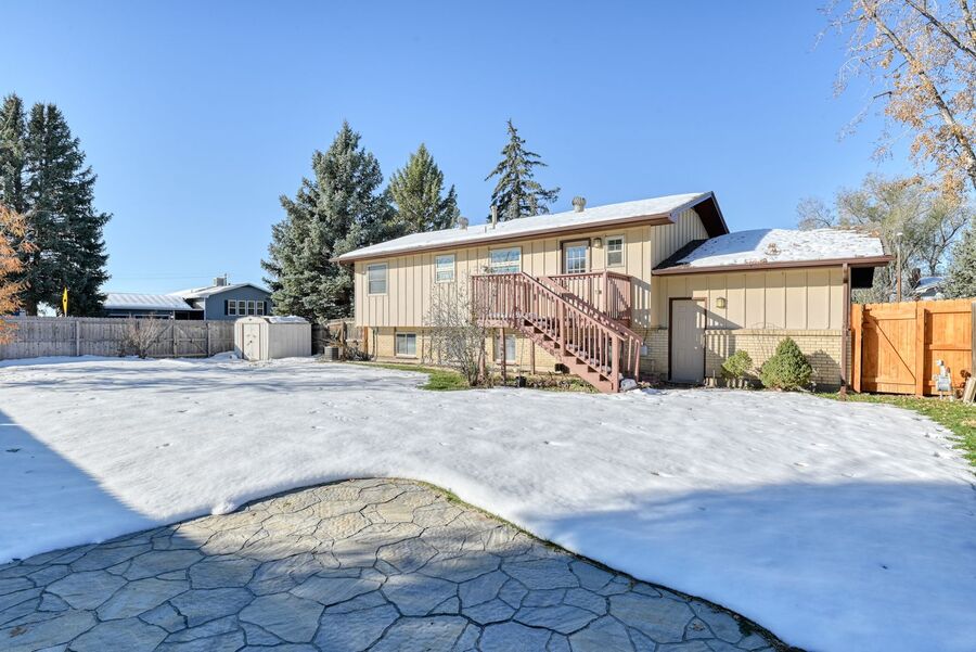 Welcome to this charming bi-level home. As you come up the steps you will be greeted with a cozy living room that flows seamlessly into the dining area and modern style kitchen. The kitchen has updated stainless steel appliances that compliment the white cabinetry beautifully. Continuing from the kitchen you'll find a gorgeous full bathroom and the well sized primary and second bedrooms. From the dining area, step out onto a lovely deck that overlooks a spacious backyard, fully fenced for privacy and ideal for grilling, entertaining, or enjoying those sunny Colorado days. A small shed in the back provides additional storage space. Heading downstairs you'll discover a generous family room perfect for movie nights. A third bedroom, another full bathroom, and a convenient laundry room round out the lower level. Completing this delightful home is a one-car garage conveniently located near the entrance, as well as a central air conditioning unit for added comfort during the summer. This cozy 3-bedroom, 2-bathroom gem is ready for you to make it your own.