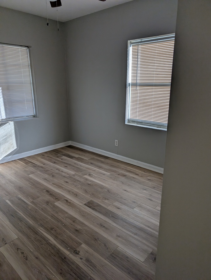 Renovated and very nice block home for rent! New HVAC, new floors, new fridge. Storage space/garage in the back. Lots of parking.
