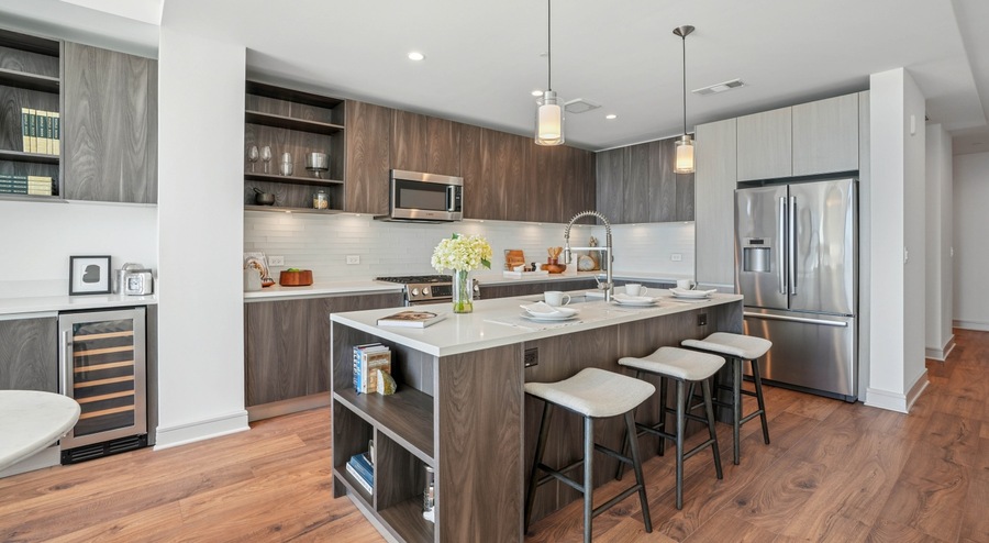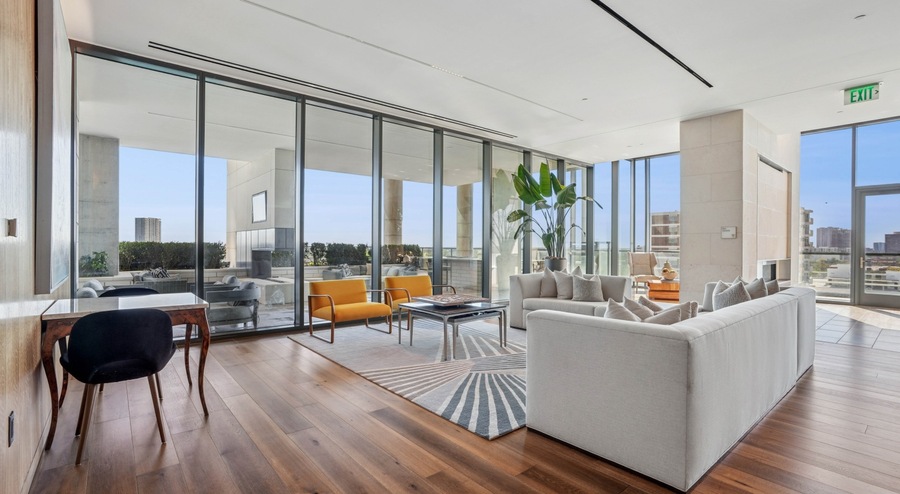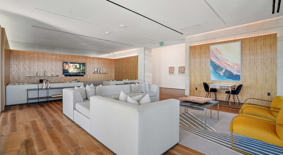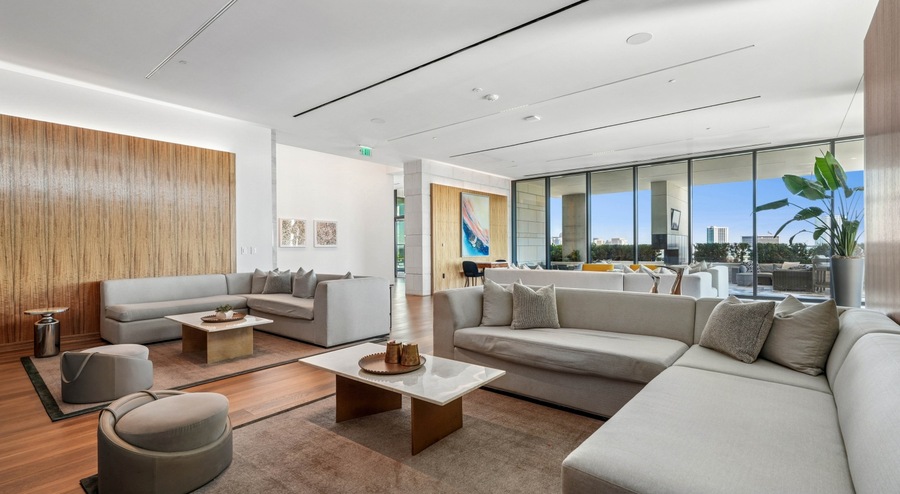 An impressive suite of amenities enhances the lifestyle experience, including a resort-style pool with cabanas, a fully equipped fitness center, private entertainment lounges, landscaped outdoor spaces, valet, and dedicated concierge services. Carefully curated art throughout the building reflects its creative roots and adds to the refined ambiance.