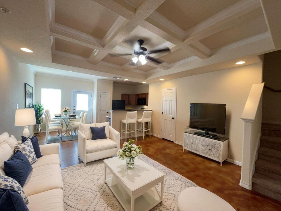 Step into this inviting 3-bedroom, 2.5-bath home offering a spacious and well-designed layout perfect for comfortable living. With an open floor plan and high ceilings, the main living areas feel bright and airy, while the combination of carpet, ceramic tile and stained concrete flooring adds warmth and character throughout.