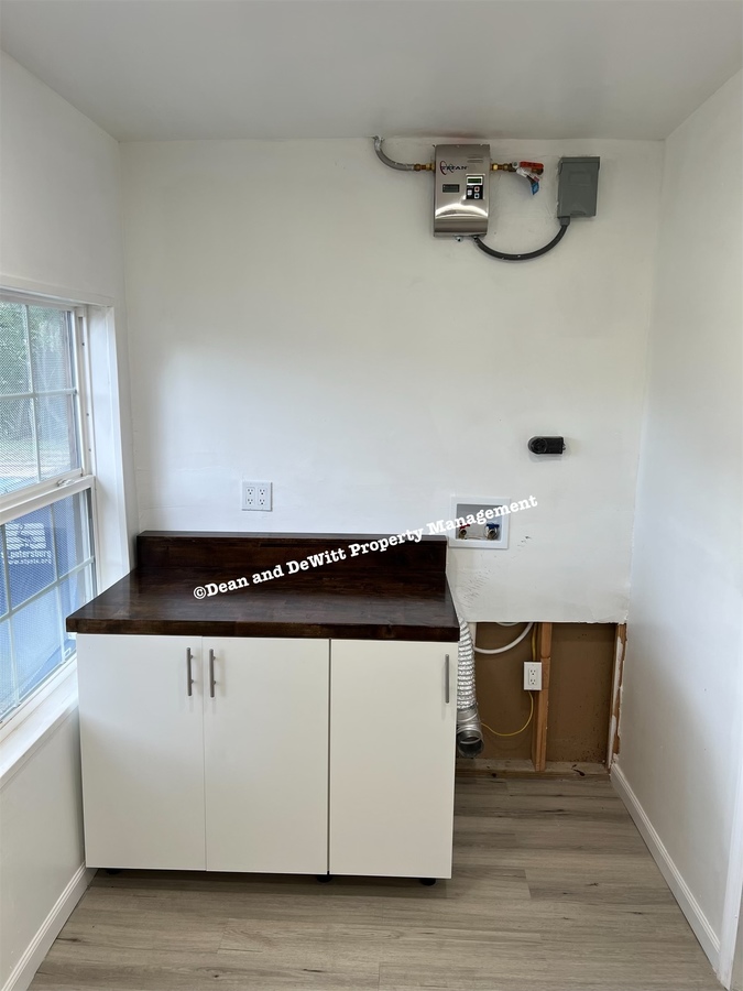 Separate laundry room with washer/dryer connections and tons of storage.