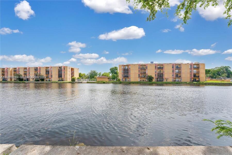 Lake views! This amazing 2-bedroom apartment offers a stunning view of the lake. It has a fully remodeled kitchen and bathrooms, as well as tiled floors. The sliding door has hurricane shutters and new impact windows were installed in the bedrooms. You'll also have one assigned parking space. The complex has a range of amenities, including a pool, kids' play area, tennis courts, and a clubhouse. This unit is situated within a secure, gated community featuring controlled access and monitored by a dedicated security guard stationed at the entrance. For added safety, the building's hallways are equipped with surveillance cameras.