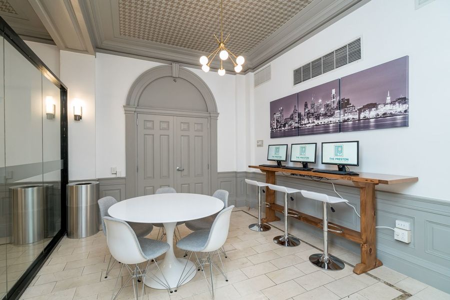 Welcome to The Preston, a modern and vibrant apartment community located in the heart of Philadelphia, PA. Our spacious studio apartments offer a comfortable and convenient living space for those seeking a dynamic urban lifestyle. With 1 bathroom, our apartments provide all the essentials you need. At our community, we prioritize your entertainment and relaxation needs. Enjoy a movie night with friends or family in our state-of-the-art movie theatre. Unwind after a long day on our relaxing terrace featuring a Bocce Ball court and a cozy fire pit. For those who love to socialize, our modern club room with a pool table is the perfect spot to meet new friends and enjoy some friendly competition. We also understand the importance of your furry friends, which is why we offer a dog park and grooming station, ensuring they have a space to play and be pampered. Convenience is key, and we have you covered. Our package room features a Parcel Pending Locker System, ensuring that your deliveries are secure and easily accessible. Our 24-hour emergency maintenance team is always available to address any concerns that may arise. For those with an active lifestyle, we offer bike storage and a cardio room featuring Peloton bikes. Stay fit and healthy in our yoga studio, or challenge your friends to a game of shuffleboard. Experience the best of city living at our apartment community. With its prime location and an array of amenities, you'll find everything you need right at your fingertips. Don't miss out on this opportunity to make our community your new home. Contact us today to schedule a tour and see for yourself all that we have to offer.