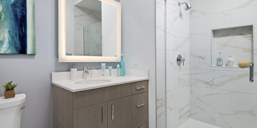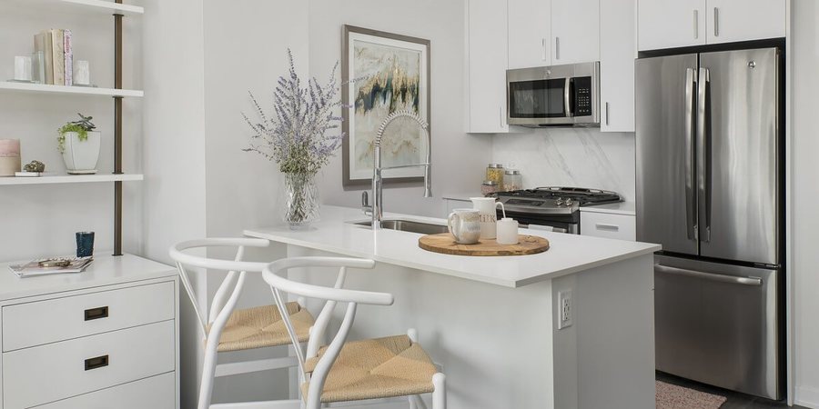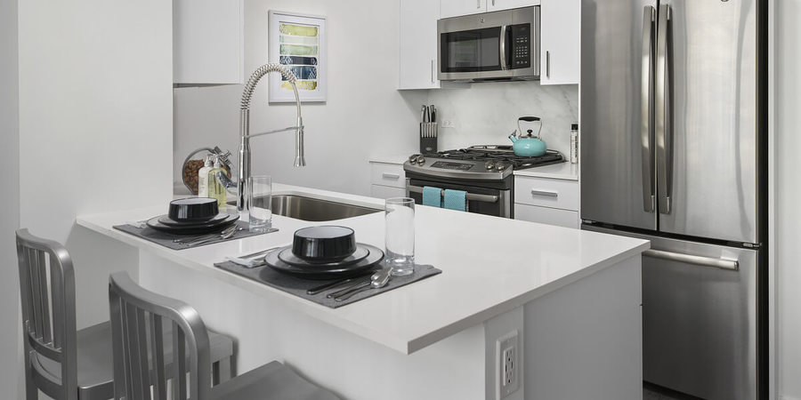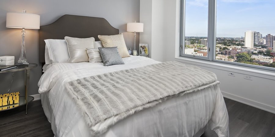 Artistically designed, their extraordinary apartment homes are conceived of oversized windows overlooking city and lake views, plank flooring throughout the units, in-unit washer and dryer, and quartz countertops with glass tile back splashes.