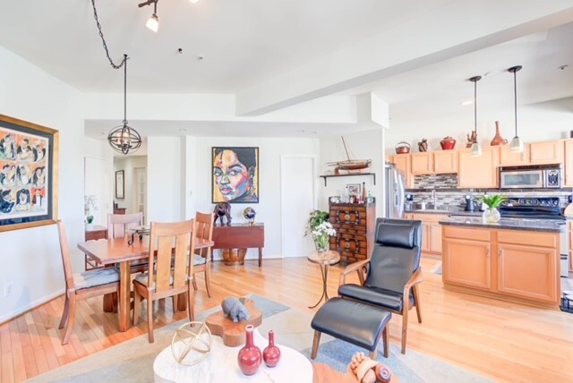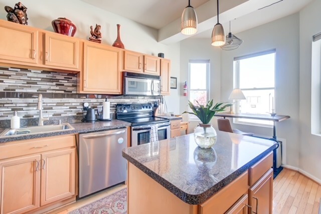 Beautiful Columbia Heights condo featuring rooftop deck, open-concept kitchen with large island, and stainless steel appliances! 1 parking spot in a nearby garage available for additional cost.