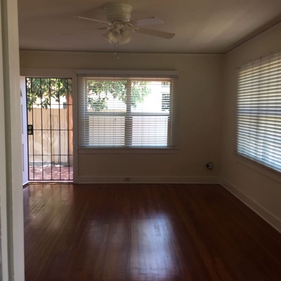 Available Now: Charming 3BR/1BA single story Craftsman style home in North Park. 1,200 sq ft. Small, quiet complex w/additional duplex located in back of property that is fenced off from home. Nice freshly painted unit w/faux fireplace, hardwood floors in living room, carpet in bedrooms, & vinyl flooring in kitchen+dining room area, & laundry hook-ups. Unique unit lay-out. Front+back yards w/side patio. Gardener is included. Tenants responsible for all utilities. 1 year lease. Near Morley Field, Balboa Park, Zoo, golf course, & Naval Hospital. Minutes to grocery, small shops, restaurants, Downtown, & 5/163/805 Freeways. $35 Application Fee. (WP 619-296-3189) Sorry no pets, no co-signer
