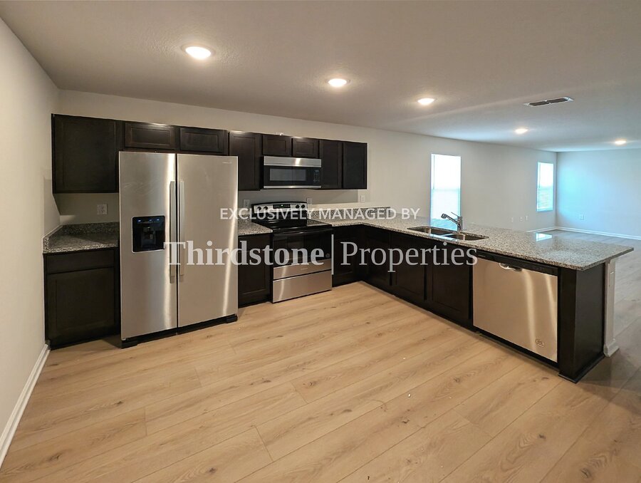 Book an appointment today to view this newly built 3 bedroom, 2 bath home. The open floor plan, made up of easy to clean vinyl plank flooring, introduces the spacious layout where the key living areas flow seamlessly into one another. The kitchen features stainless steel appliances including an over-the-range microwave, dishwasher, and gleaming granite countertops offering bar seating and plenty of room for your culinary adventures. Large windows allow natural sunlight to light up each room while blinds are also installed for added privacy. The primary suite includes a spacious walk-in closet and a connected full bathroom. The dedicated laundry room is equipped with washer/dryer hookups for convenience, leading to the attached one car garage. The fenced backyard provides both privacy and plenty of outdoor space. Residents are responsible for all utilities, lawn care, and are required to maintain active renter’s insurance throughout the lease term. Pets are welcome, breed and weight restrictions may apply. Application fee $55 per person 18 and over. Lease Term: 12 months.