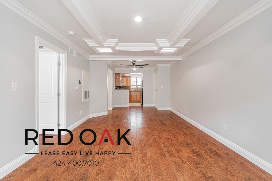~ Spacious Open Concept: Hardwood-style floors with recessed lighting.