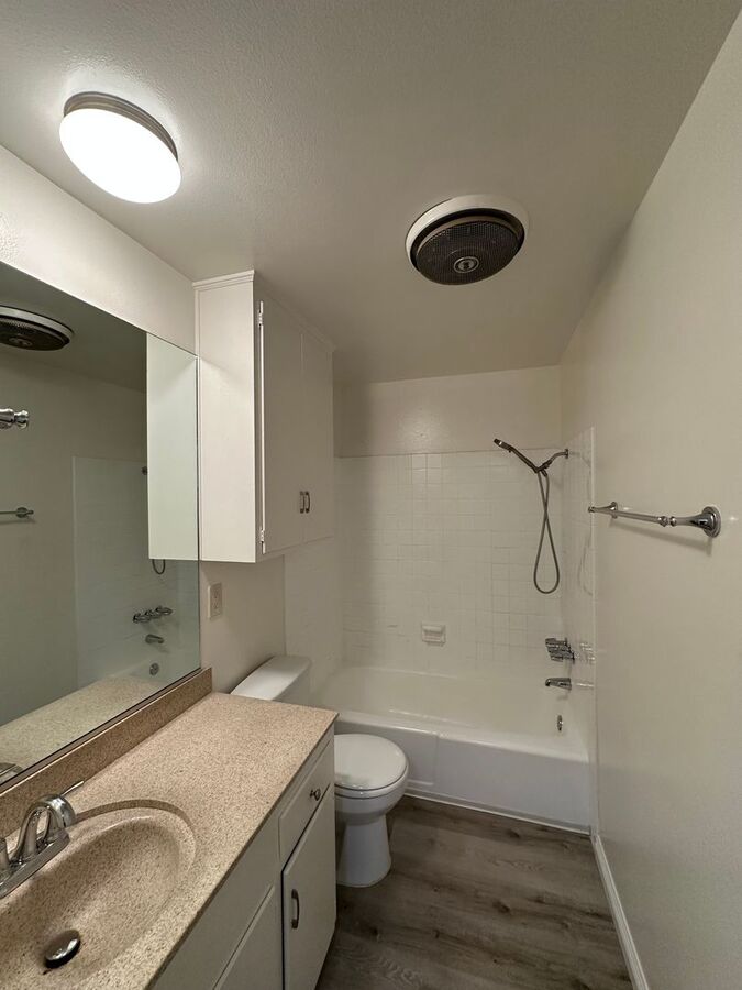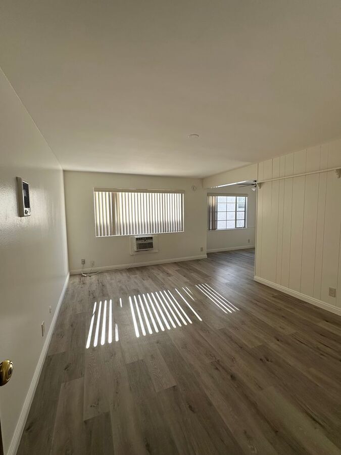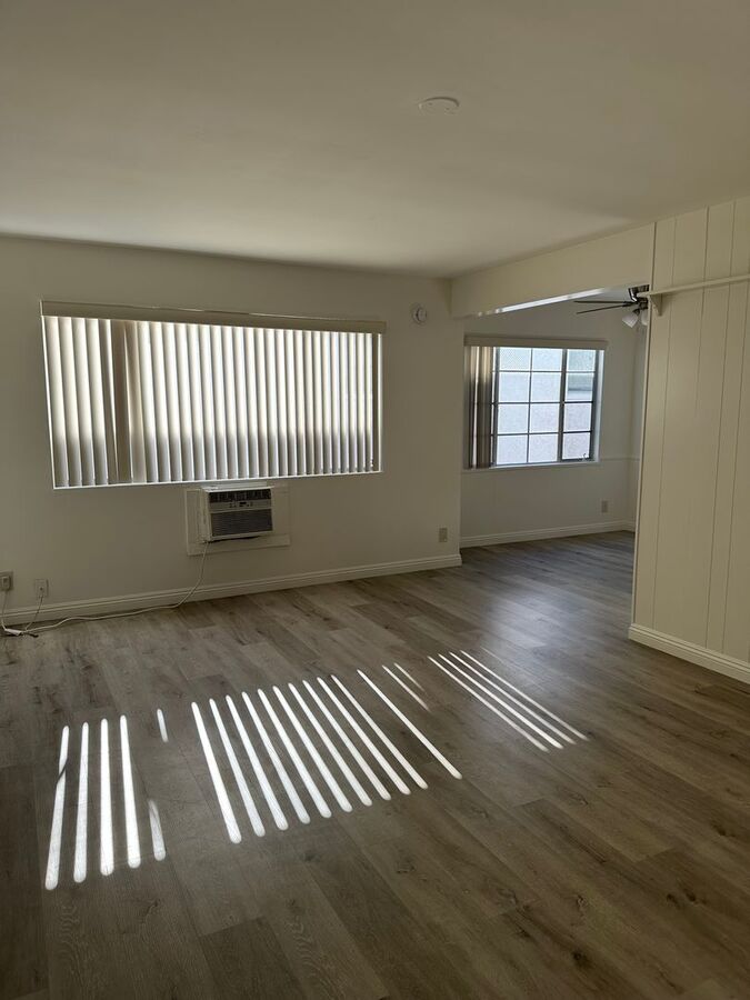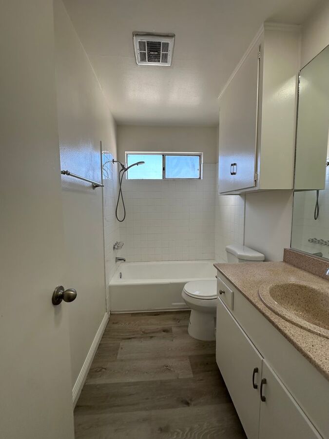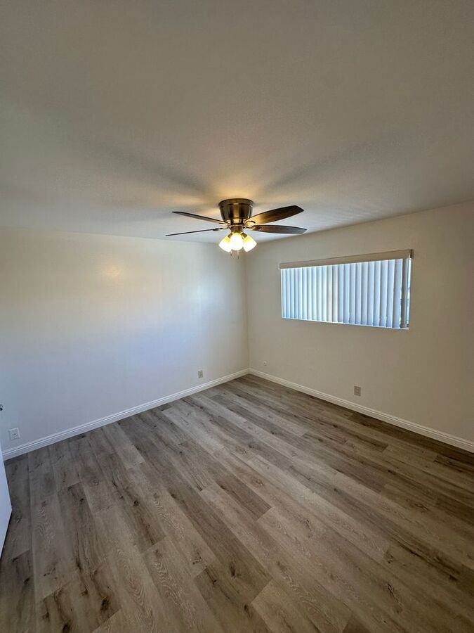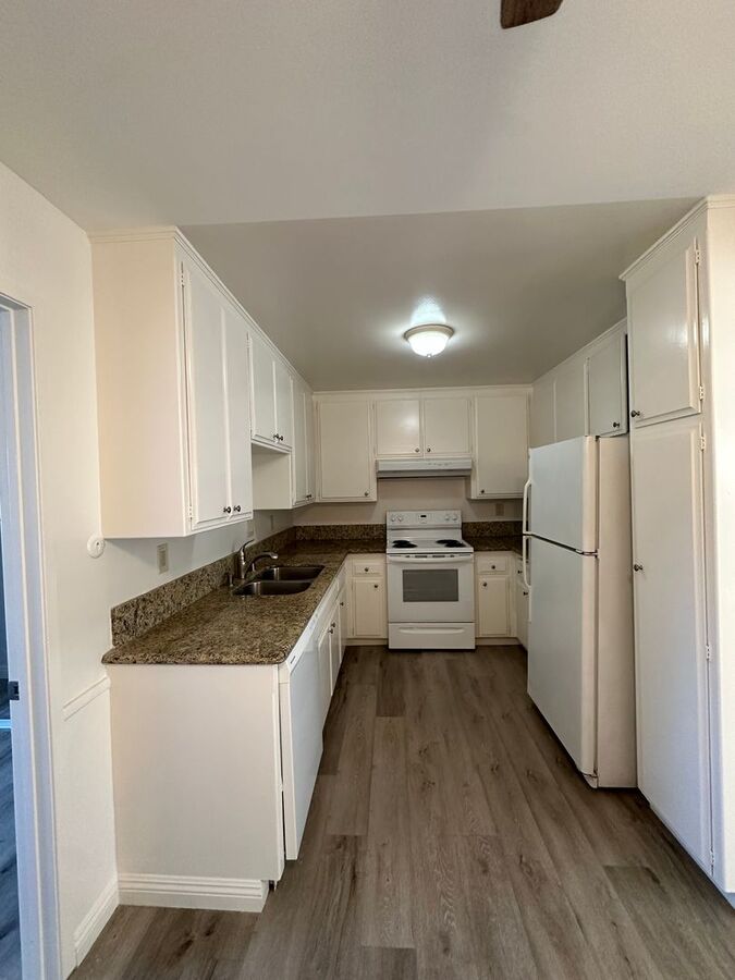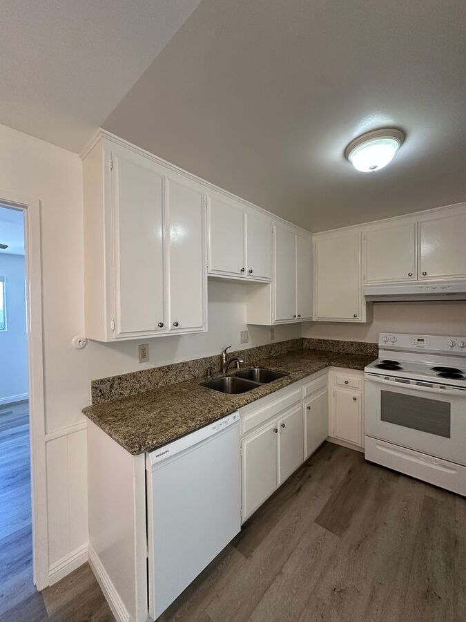 Large Upstairs Corner Unit Features Two Spacious Bedrooms on Separate Sides of the Home , Two Full Bathrooms, Large Open Floor Plan With Plank Flooring Through Out, Light and Bright Kitchen with Granite Counter Tops, Deep Stainless Steel Sink, Dishwasher, Refrigerator, Electric Stove, and A/C Unit. Water and Trash Are Included. Onsite Laundry and 1 Assigned Parking Space. Conveniently Located To All Shopping , Restaurants, Public Transportation. And Easy Freeway Access!!!! Move In Ready!!! A Must See Property!!!!!