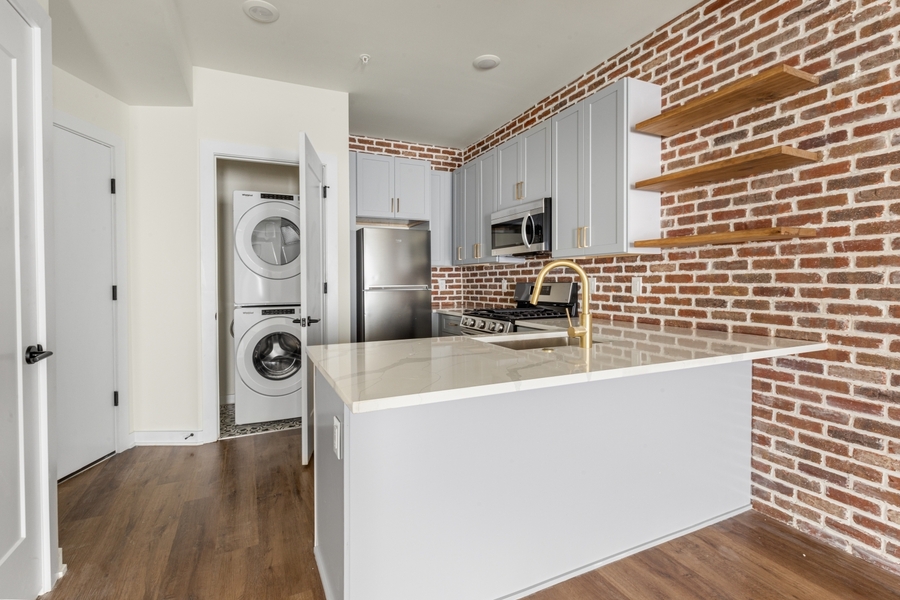 Welcome to Fishtown Flatiron, a professionally managed building with modern amenities! This wonderful building features a lobby with secure entry and a package room, plus two separate stairwells for added convenience. Your kitchen boasts exposed brick and a full lineup of stainless steel appliances. Each apartment is conveniently equipped with central air conditioning and in-unit washer & dryer for added convenience. Call today!