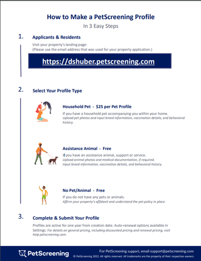 We only accept rent payments through our online portal at dshubergroup.com or by money order in person at our office. Property owners never collect rent directly. If you are asked to pay in any other way, please report it to our office at 517-507-9993.