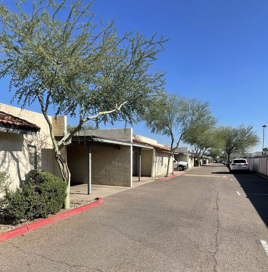 OPEN HOUSE! January 19th from 10am to 11am. Generously sized 2 bedroom 2 bathroom unit located in Glendale with wood plank flooring and custom grey paint throughout. As you walk-in the front door, you will be greeted by a bright open concept living room and eat-in kitchen area. The kitchen has updated shaker style cabinets, double sink and full black appliance package. The primary bedroom also has an updated vanity in the private bathroom and walk-in closet. Other amenities include a dedicated laundry room with washer/dryer, carport and a private yard area. This cozy community has a pool for the hot Arizona summer, a dog station and is close to the historic area of Glendale with lots of shopping and restaurants. Pet-friendly for up to two spayed/neutered pets with a $300 fee per pet deposit and $35 monthly pet rent.