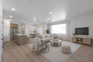 Discover modern living in this newly built 2025 home in Spanish Fork, UT. Designed with a neutral, calming color palette and matching black hardware throughout, this 3-bedroom, 2-bathroom residence blends clean design with everyday functionality. The primary bedroom features a walk-in closet with custom built-in shelving, while central air conditioning, a gas furnace, and an included washer and dryer ensure comfort and convenience. An attached garage provides secure parking and storage. This thoughtfully designed home offers a refined yet welcoming living experience.