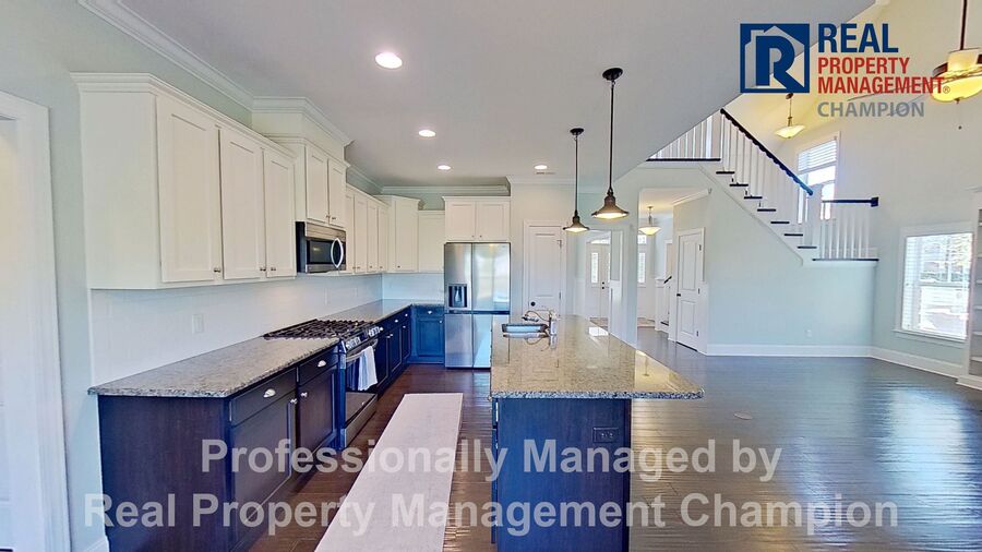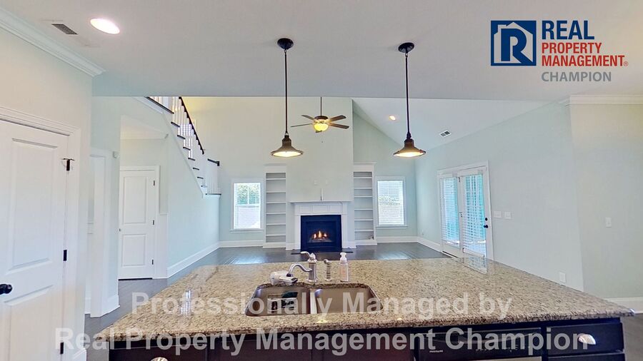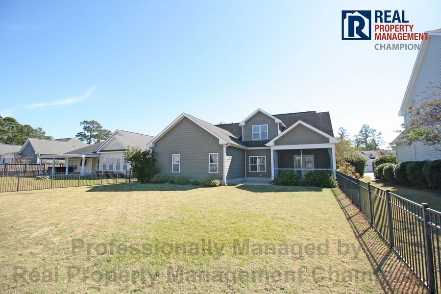 This gorgeous 3 BD/ 2.5 BA executive home is ready for you to move right in. The curb appeal and charming front porch will grab you at first sight while the well-designed floorplan and upscale features will have you falling in love. The foyer opens to the formal dining room with custom wainscoting, coffered ceiling and twin windows overlooking the front yard. The kitchen is open to the great room and is anchored by the oversized island with breakfast bar. Beautiful cabinetry, granite counters, tile back splash, a full-size pantry, stainless steel appliances and eating area are all found in this well-planned kitchen. The spacious great room features a cozy fireplace flanked with built-in shelving and windows, a vaulted ceiling and access to the screened porch. The main level master suite includes an expansive walk-in closet and private bath with step-in tile shower, separate garden tub, dual vanities and additional storage closet. A powder room, generous sized laundry room and attached two car garage round out the main level. Upstairs you will find two bedrooms, a full bath with double sink vanity and tub/shower combination and a spacious bonus room. Enjoy your outdoor activities in the spacious fenced backyard that overlooks the community pond. Convenient to the Monkey Junction area with all the shopping and dining it has to offer.