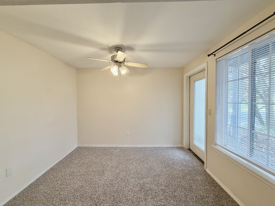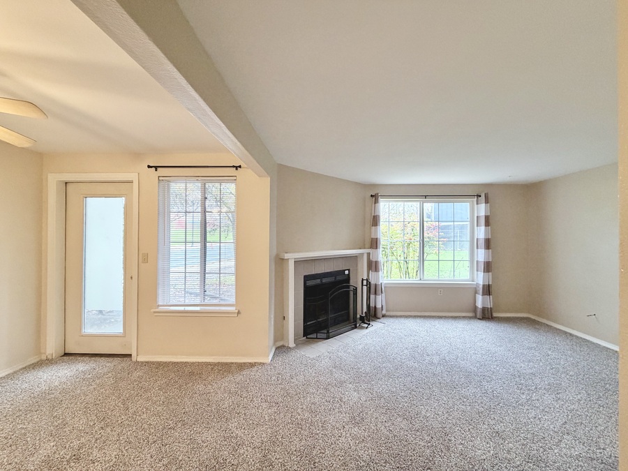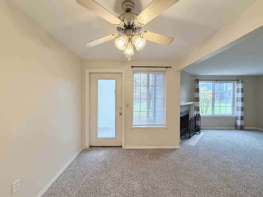 Unwind in the cozy living room featuring a cosmetic-only fireplace and a private back porch—your new favorite spot to relax 🌿. The primary suite offers a peaceful retreat with a walk-in closet and a spa-like ensuite bathroom, while the second bedroom brings in tons of natural light and includes a generous closet.