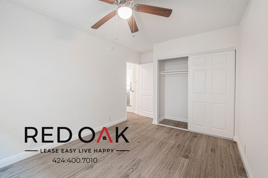 ~ Relaxing Bedroom: Featuring generous closet and breezy ceiling fan.