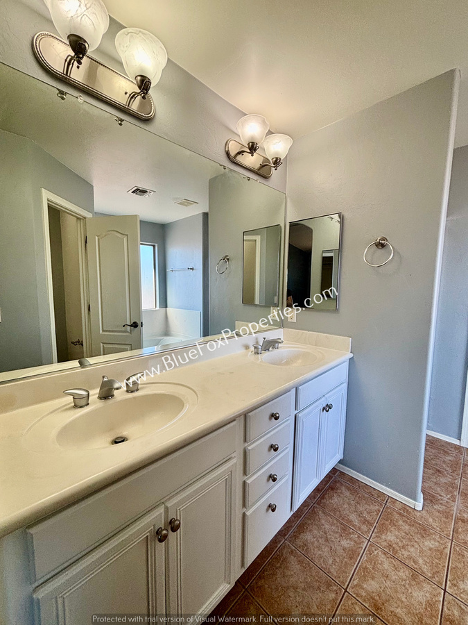 Upstairs, you'll find a versatile loft area, the guest bathroom, and a laundry room with washer and dryer hookups. The primary suite includes its own bathroom with a double-sink vanity, standing shower, soaking tub, and enclosed toilet room, along with a generous walk-in closet. The two additional bedrooms are also located on the second floor.