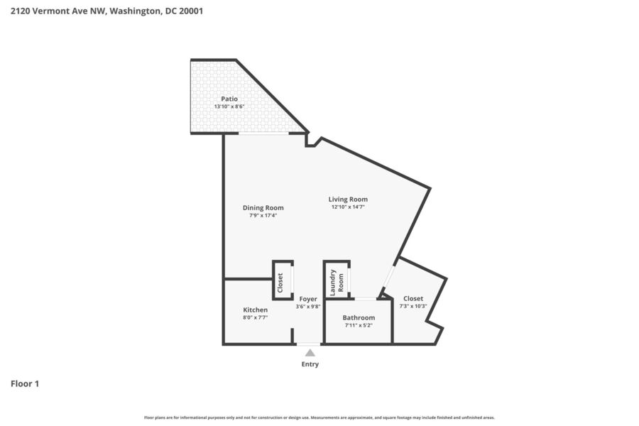 0 Bed / 1 Bath condo available immediately at 2120 Vermont Ave NW #12, Washington DC, 20001