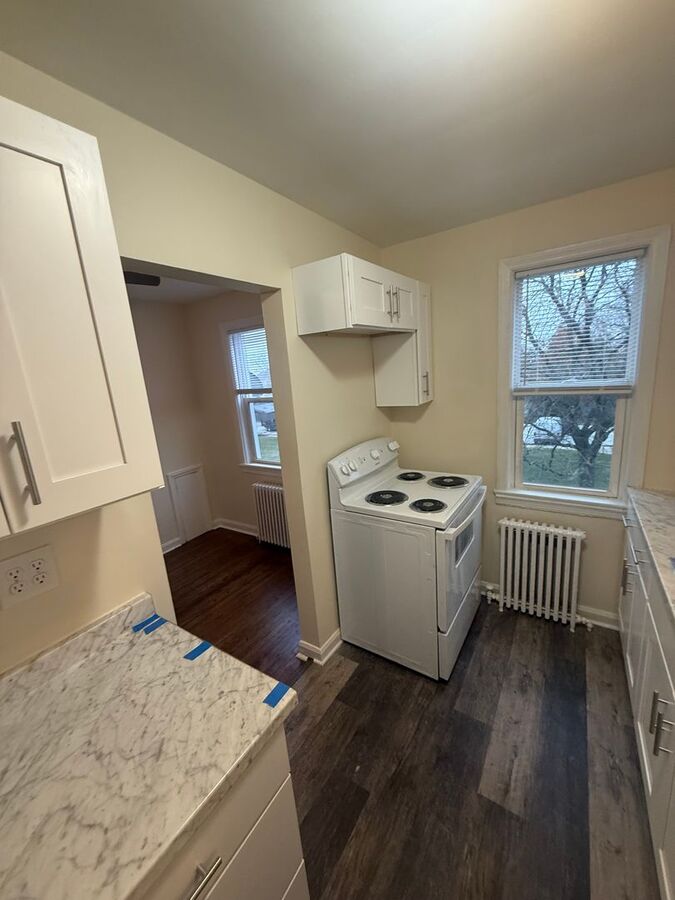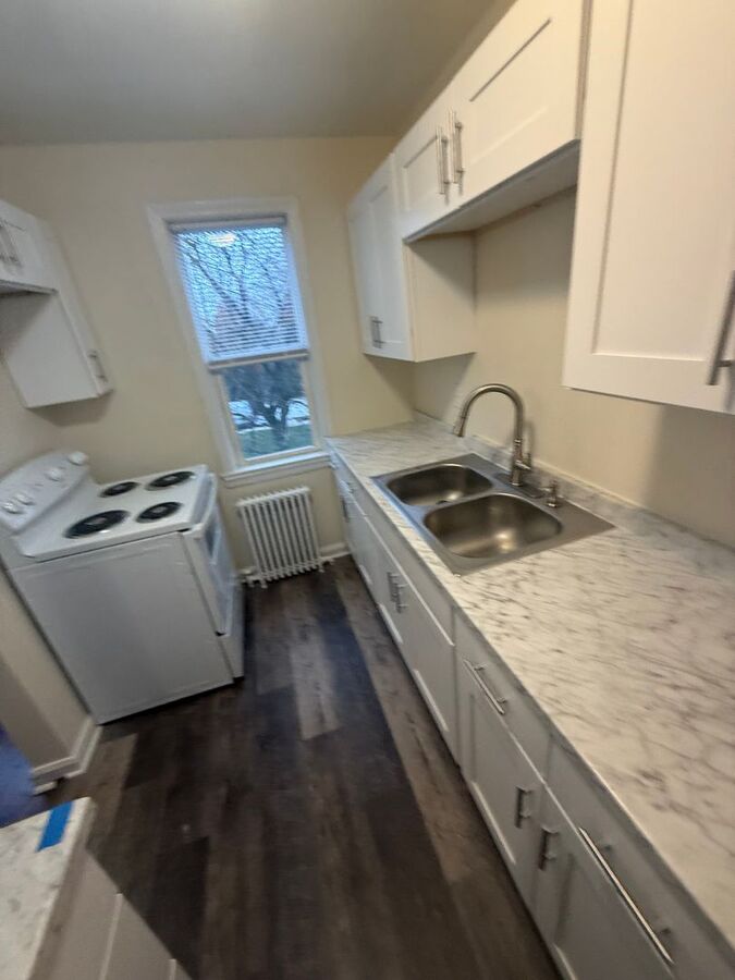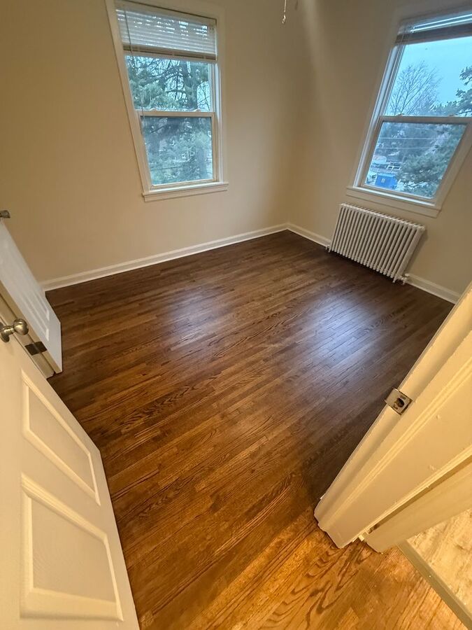 We have a newly renovated 2 bedroom 1 bathroom apartment with hardwood floors.