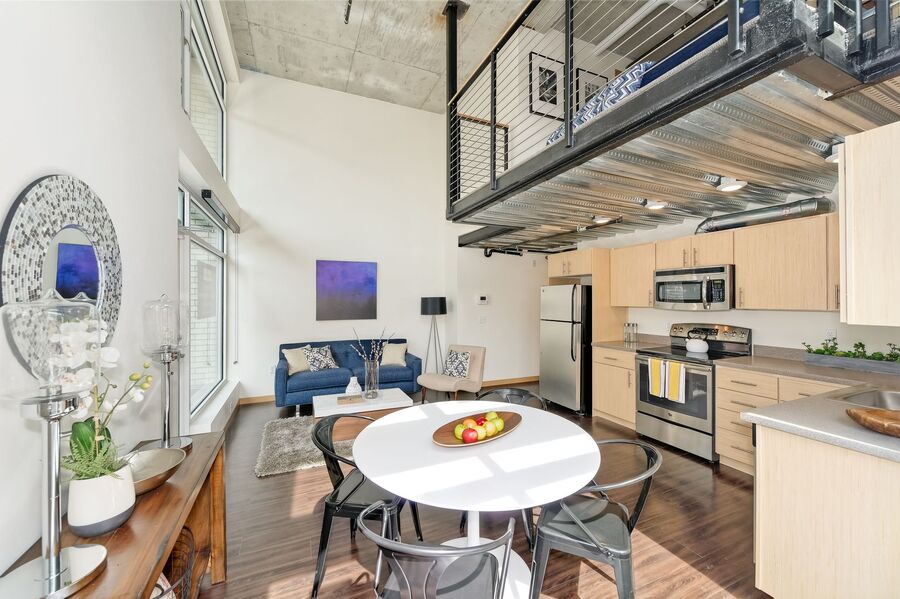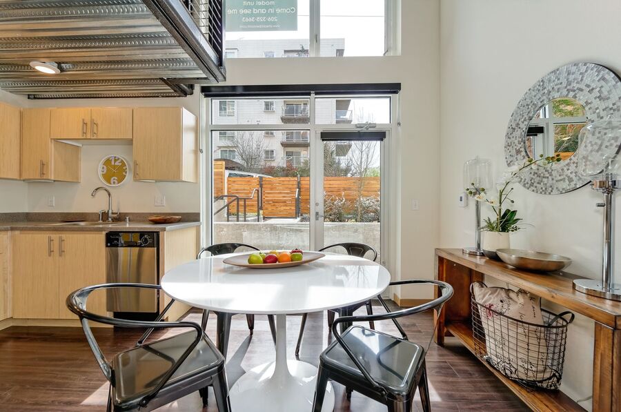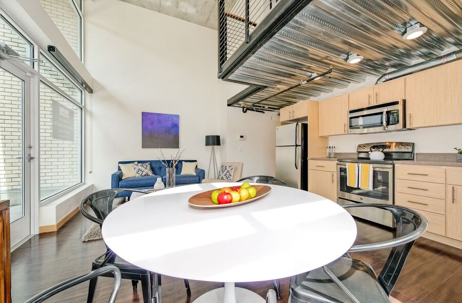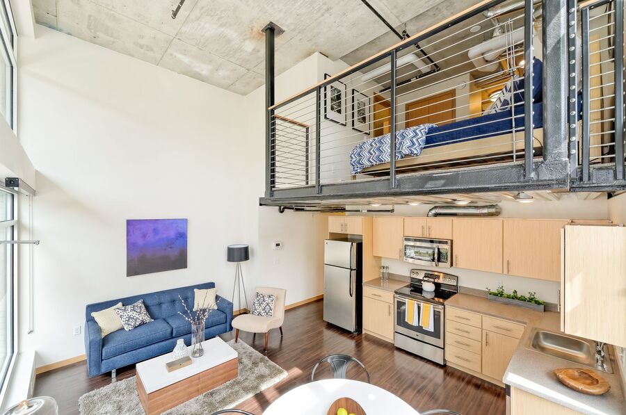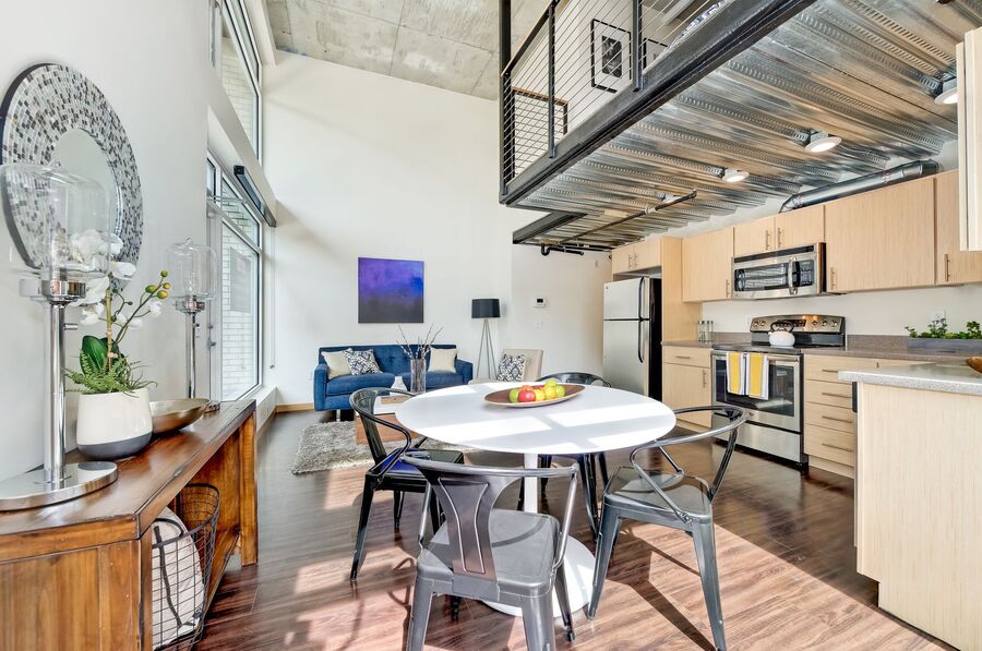 This is a smartly designed, industrial-style apartment studio with a private balcony in the heart of Capitol Hill, created for you.