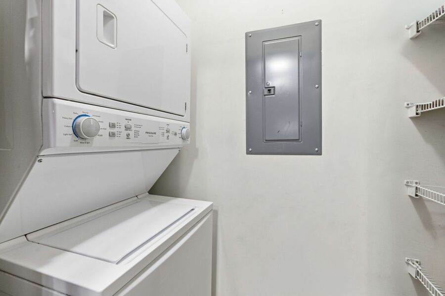 Inside, you’ll find a bright open kitchen and dining area equipped with an electric stove/oven, washer and dryer, and plenty of storage including a walk-in closet. The home features central heating and air conditioning for year-round comfort.