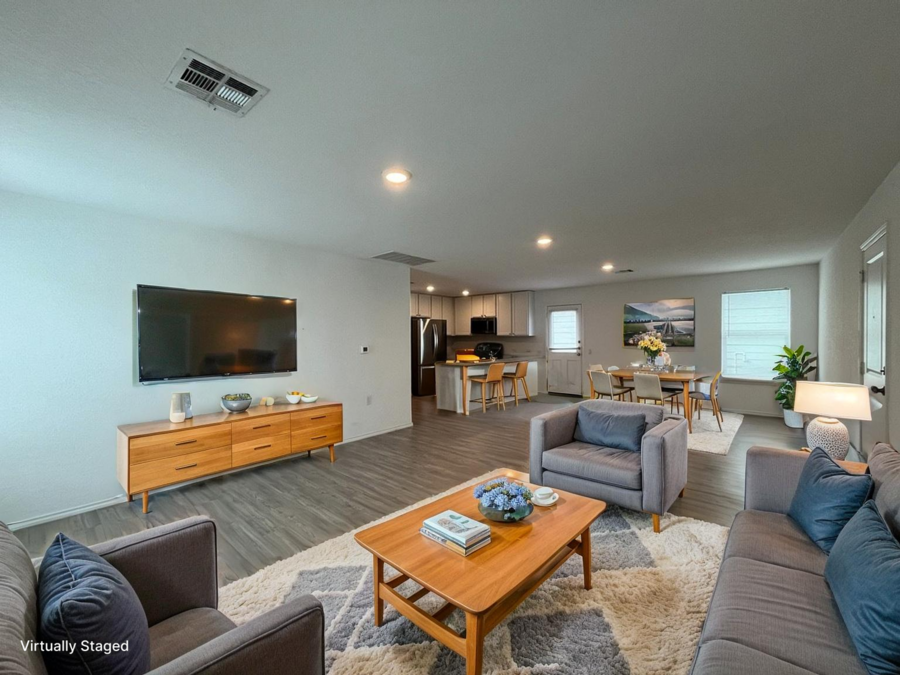Discover this stylish 3-bedroom, 2-bath home featuring an open floor plan and modern conveniences. The home is equipped with an HVAC system with a programmable thermostat, tankless water heater, and vinyl flooring throughout, ensuring comfort and energy efficiency.