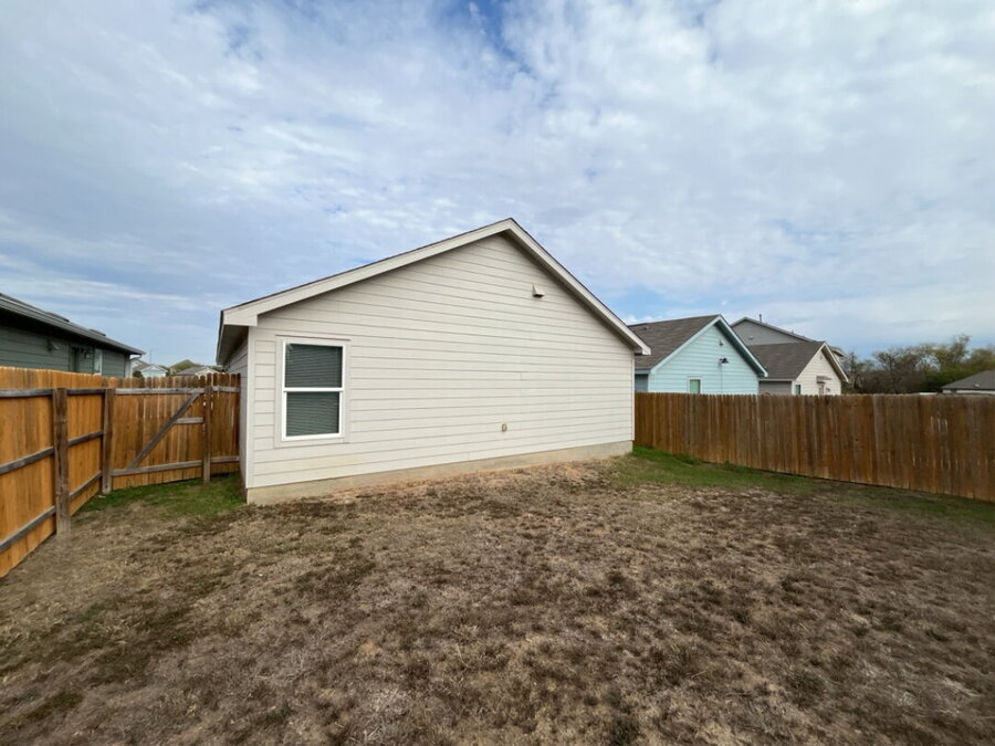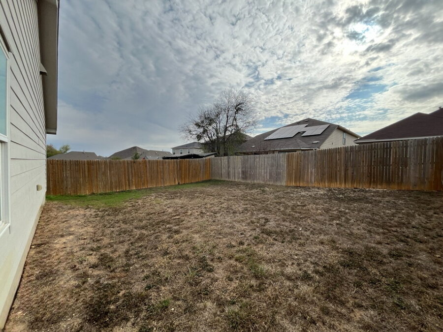 The primary bedroom offers a tranquil retreat with a shower/tub combo, single vanity, and a walk-in closet. The backyard, enclosed by a privacy fence, provides a private outdoor space for relaxation or entertainment.
