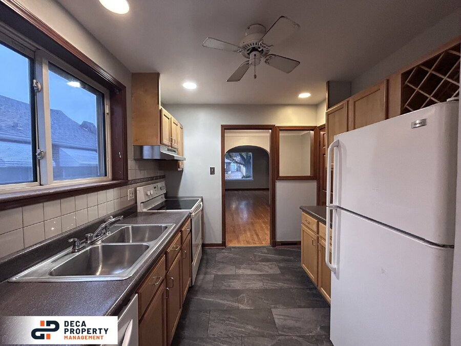 Feast your eyes on this classic three-bedroom, two-bathroom home. Pay attention to the old school craftsmanship, with beautiful woodwork, and arched doorways. The kitchen comes stocked with an electric stove, refrigerator, dishwasher, garbage disposal, and pantry, and featuring beautiful hard wood cabinetry. Enjoy preparing your culinary delights for friends and family in the formal dining room. All 3 bedrooms are spacious, with great closet space. The lower level bedroom could also substitute for a remote work space with its great natural lighting. The partially finished basement which would be ideal for additional living space, features a laundry room with a washer and dryer provided (not to be repaired or replaced). The backyard is great size with a patio, perfect for family time or entertaining friends. Off street parking is provided for your convenience. Schedule a showing today!