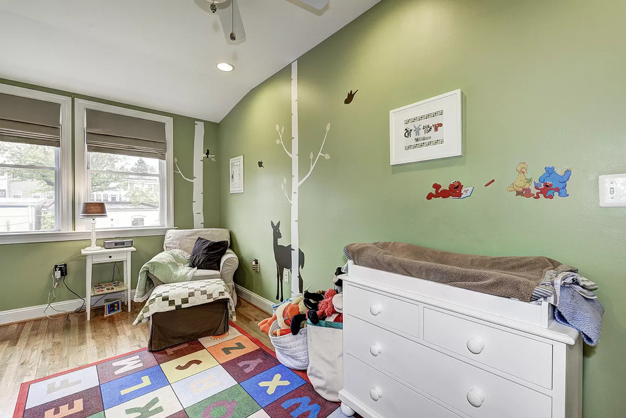 Get your hands on this rare home featuring eye-catching curb appeal, large front porch, freshly painted interior walls, recessed lighting, open-concept living space, unique custom tray ceilings, lovely trim and crown molding, original exposed brick, sun-filled natural light, large windows, charming classic chandeliers, main floor half bathroom, stainless steel kitchen appliances, built-in microwave, oven, dishwasher, new refrigerator, wine fridge, plenty of countertop space, crisp white kitchen cabinets and drawers, large island, second floor full bathroom, several skylights throughout, three spacious bedrooms including a family-ready nursery with custom Elfa closet system, three ceiling fans, enormous master suite, designer master bathroom with double vanity and high-end tiling, enclosed walk-in shower, fourth floor den perfect for an at-home office or playroom, amazing basement with tiled flooring, lower-level full bathroom, laundry room with washer and dryer, and a beautiful backyard that includes a rain barrel system, deck, and tons of potential for any gardener or hobbyist.