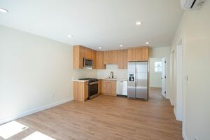 From the moment you step inside, you’ll notice the bright and open layout with large windows that fill the space with natural light. The interiors feature Mid-Century inspired finishes with warm, wide plank floors that create a welcoming and modern feel. The kitchen stands out with brand new stainless steel appliances including a gas stove, refrigerator, dishwasher, and microwave, paired with sleek quartz countertops and European style cabinetry with timeless black finishes. Whether you love cooking at home or simply want a modern space that feels stylish and easy to enjoy, this kitchen delivers. The living area flows seamlessly, perfect for relaxing or entertaining, with new finishes throughout that make the home feel warm and inviting. And because everything in the unit is brand new, from the appliances to the AC, plumbing, electrical, windows, and finishes, you’ll be the very first to experience it all.
