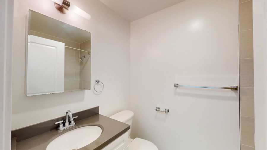The apartment features two bedrooms that provide flexibility for a variety of living arrangements—whether you need a dedicated home office, guest room, or additional living space. The kitchen is equipped with sleek stainless steel appliances, including an electric stove/oven and a dishwasher, making meal prep and cleanup easy and efficient.