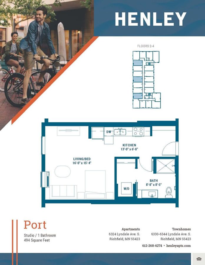 Henley brings the Twin Cities home with easy access to Minneapolis, Edina, Bloomington, downtown Richfield and endless entertainment. Just steps away from Richfield Lake, amphitheater and walking trails. Each floor plan features luxury kitchens, mobile device enabled features, LED bath fixtures and more. Throughout Henley, you'll find tech-friendly conveniences to simplify your day including an app-based wellness center, fully wired co-working lounge, and car-charging stations in our heated parking garage.