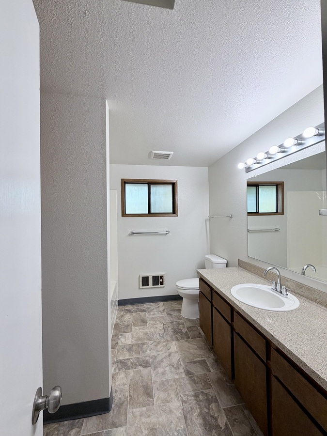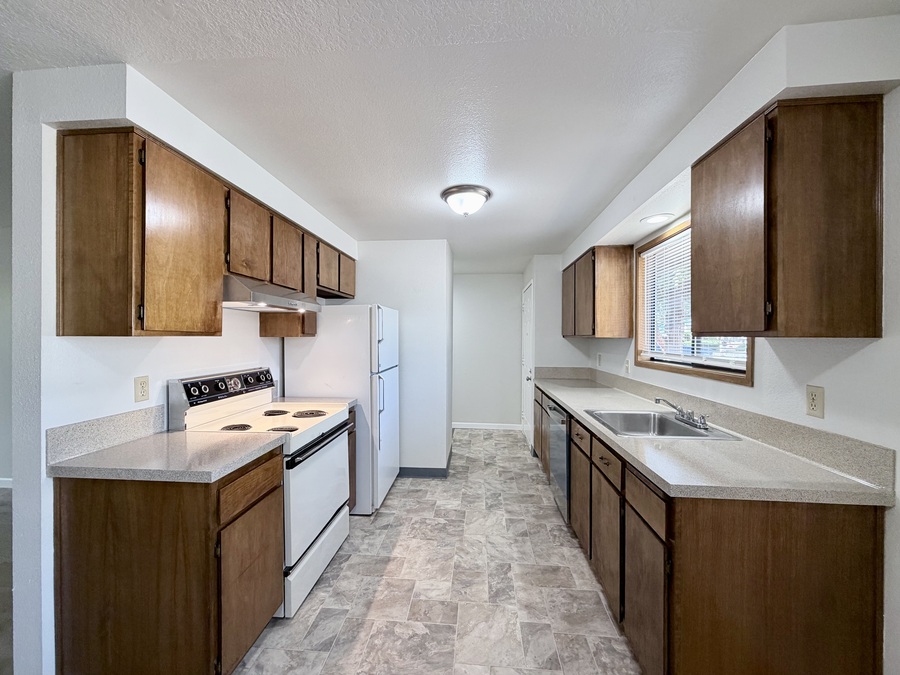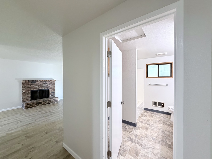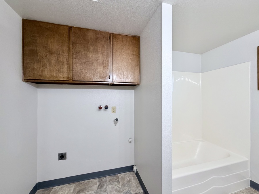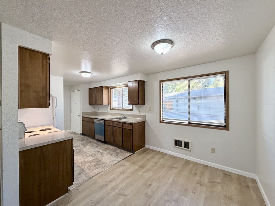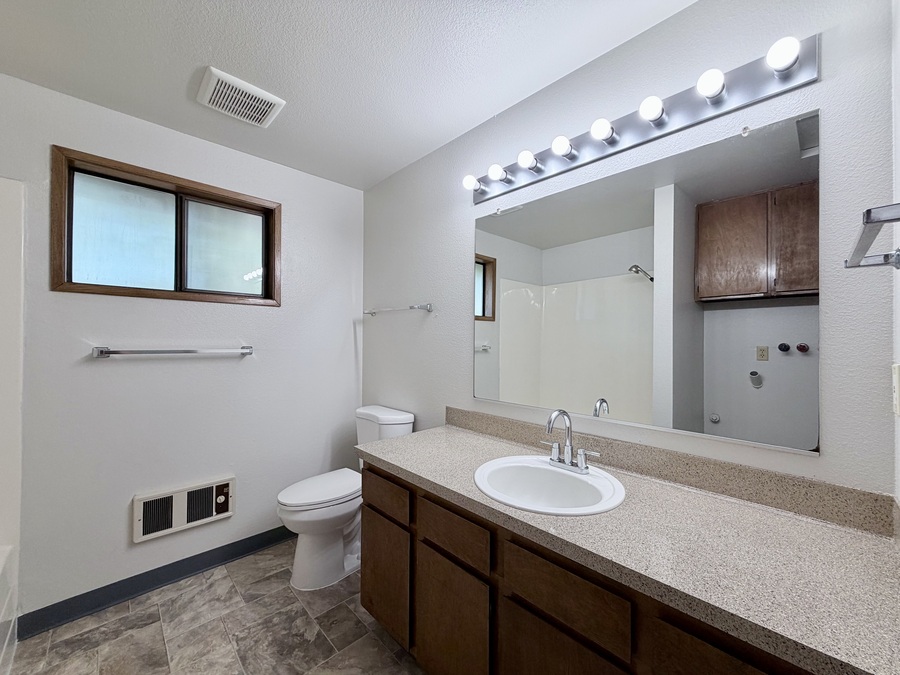 The bathroom offers generous counter space, a full tub/shower combo, and doubles as a laundry area with washer/dryer hookups for added ease. Two spacious bedrooms provide ample closet storage and sun-filled windows, making this home as functional as it is inviting.