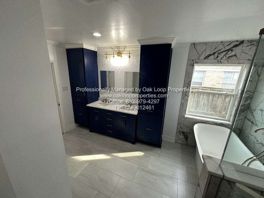 Huge Marble Ensuite with soaking tub, rain shower, and his/her