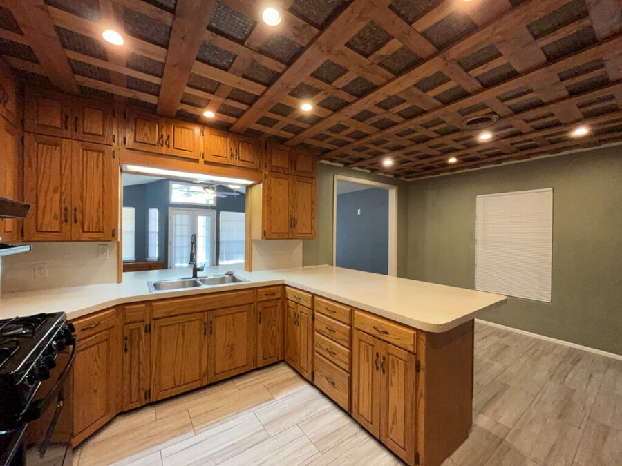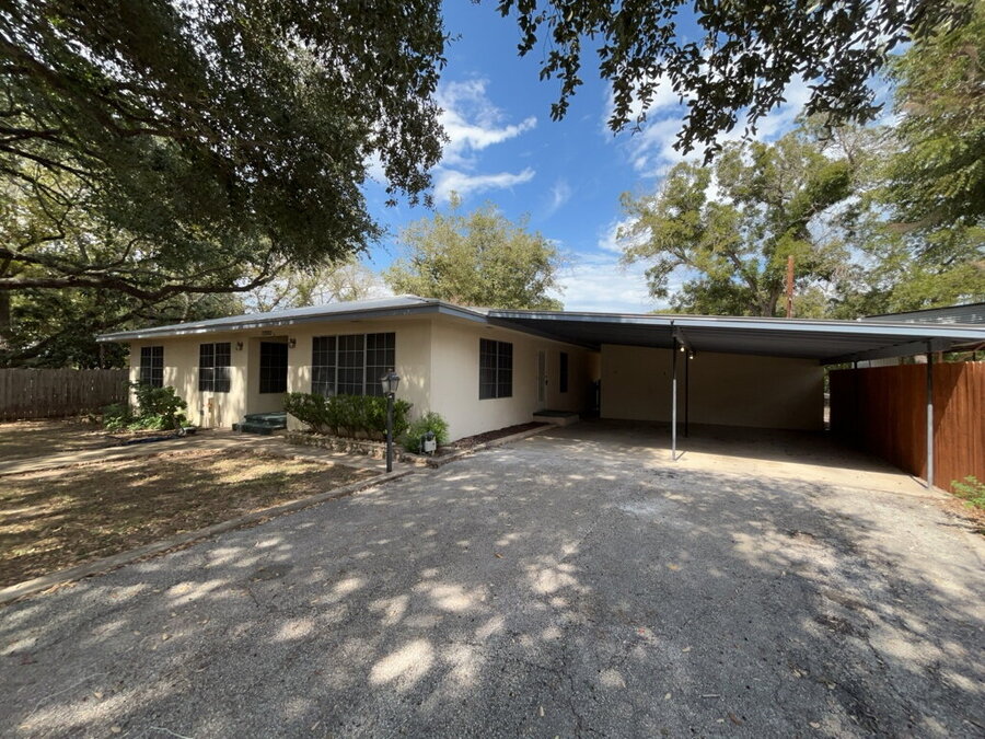 Step outside to enjoy a generous backyard with mature trees, a covered patio/deck, and a mix of chain link and privacy fencing offering both shade and seclusion. A serene river runs along the back of the property, adding a peaceful, natural backdrop. A detached laundry room with washer/dryer hookups adds convenience, while a storage shed and 2-car carport provide ample space for storage and parking.