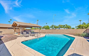 Great condo! Hard to find end unit! This end unit overlooks the common area with great views. Largest floorplan in complex! Vaulted ceilings, bay windows, and lots of light!! Living room has fireplace with open floor plan. Walk in closets, patio/deck faces greenbelt area. 1 car garage with private walk up & storage. Community features mature landscaping, pool, SPA, BBQ grills and workout room. Great location close to asu, mcc, and freeways. 20 min to downtown PHX.