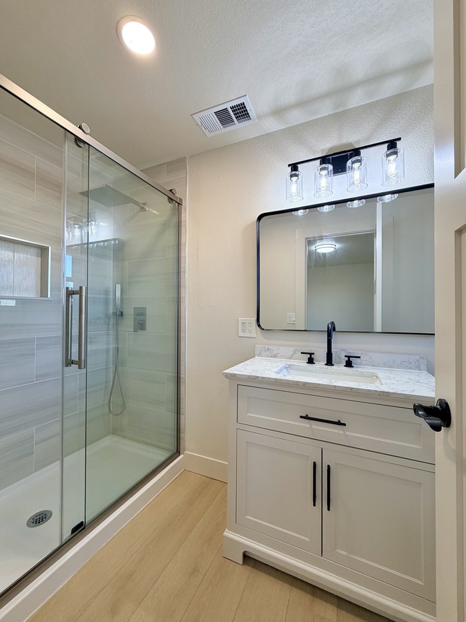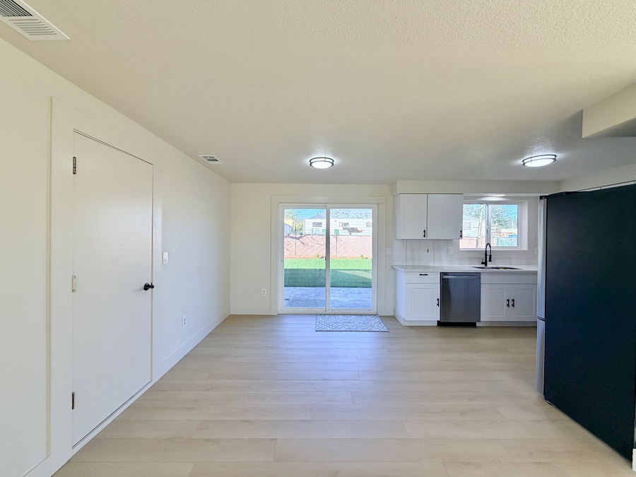 Come tour this freshly updated ranch-style home nestled in the heart of SE Portland! Flooded with natural light and featuring an open, airy layout, this home offers a true blank canvas ready for your personal touch. Brand-new LVP flooring flows throughout, while the electric fireplace set against a stylish accent wall adds a cozy focal point to the living space.