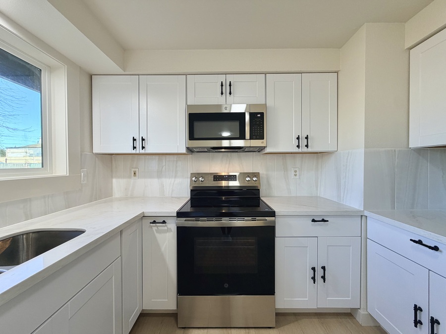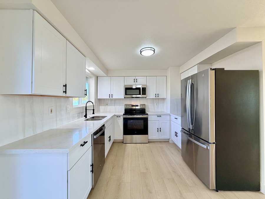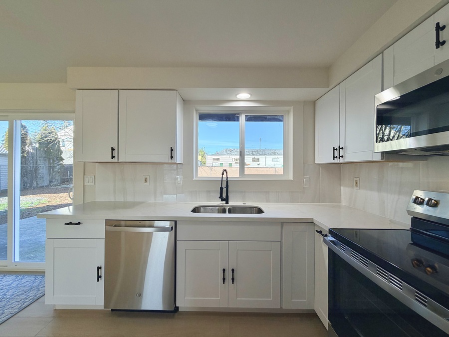 The bright white kitchen shines with brand-new stainless-steel appliances, making everyday cooking a pleasure. Down the hall, youโ€™ll find two generously sized bedrooms filled with natural light and a large shared bathroom. The primary suite has been updated and offers a comfortable retreat at the end of the day.