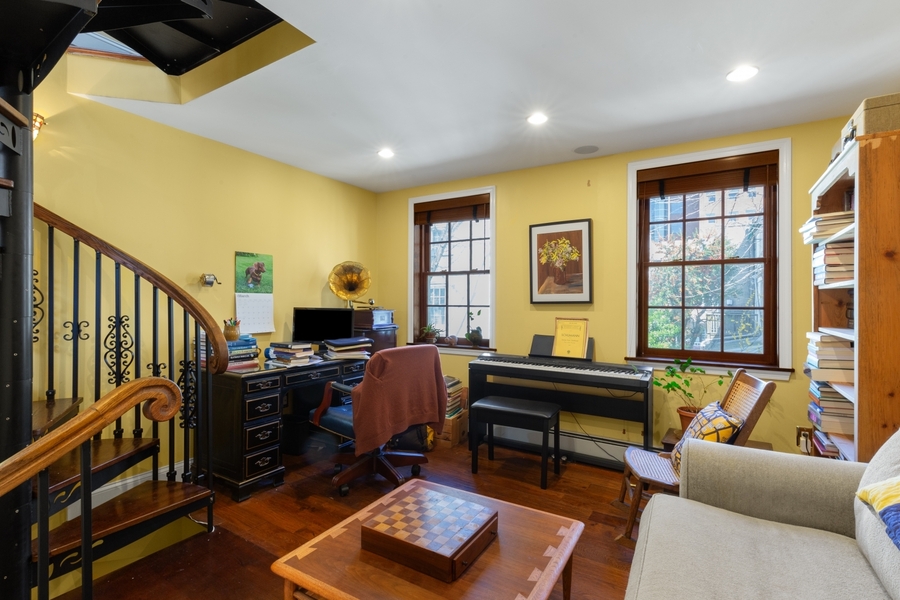 Nestled in Washington Square West, this charming residence at 928 Irving St offers 2 bedrooms and 2 bathrooms. Features include wood floors, recessed lighting, spiral staircase, and ductless mini-split A/C systems for your convenience. Enjoy a private deck and in-unit laundry. Please note that the second bedroom does not have a door, you must walk through one bedroom to get to the other.