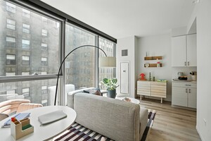 Set in the heart of The Loop, this convertible one-bedroom delivers flexibility without sacrificing square footage. The layout features a sliding bedroom door that allows you to open up or close off the sleeping area as needed, plus generous living and storage space that makes the home feel anything but compact. The oversized kitchen peninsula or island anchors the space ideal for hosting, working from home, or spreading out takeout from nearby favorites. Many residences also showcase distinctive angled windows that add architectural interest. Inside the home, you ll find stainless steel appliances, quartz countertops, wood-finish flooring throughout the living, kitchen, and bath areas, full-sized in-unit laundry, and built-in TV mounting stations for a clean setup. Life here extends far beyond your front door. The community features a year-round indoor pool, sauna and steam rooms, a 42nd-floor Sky Lounge, a fully equipped fitness center, Cook s Kitchen, and an outdoor terrace wi