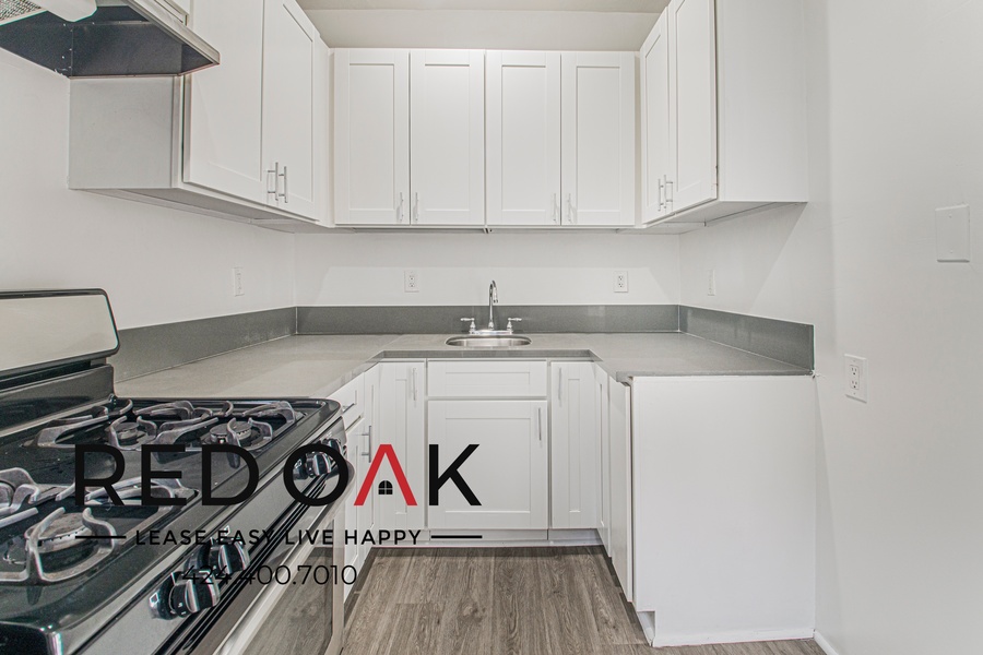 ~ Classic Kitchen: Hardwood cabinets, striking quartz countertops, and stainless steel appliances.