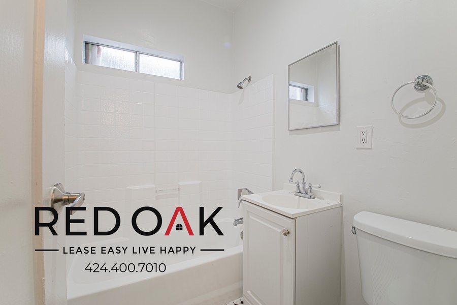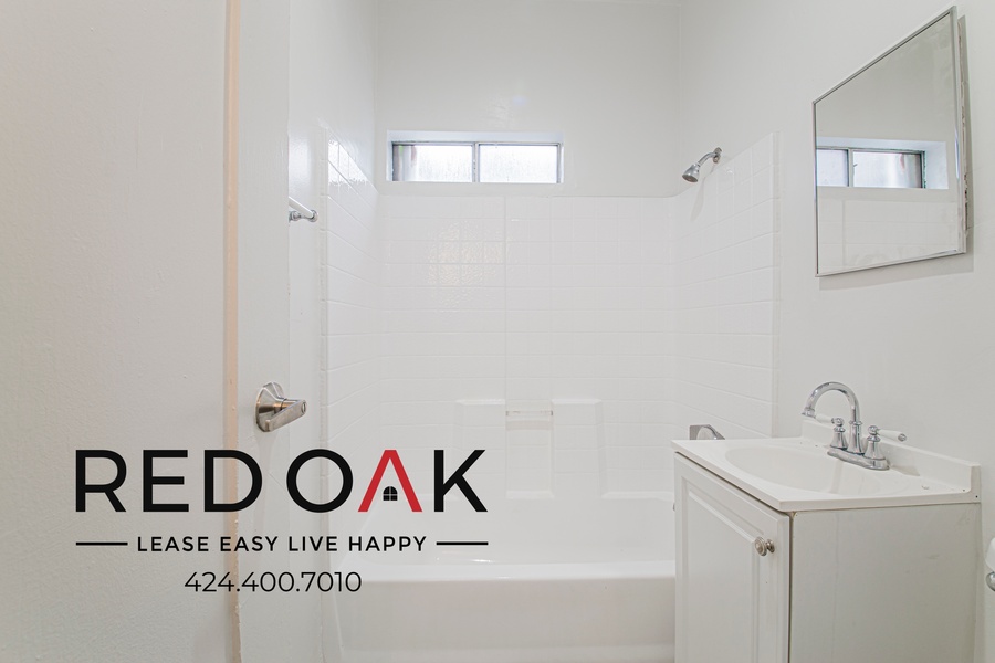 ~ Spa-Like Bathroom: Refreshing soaking tub/shower combo, stylish tile work, and a well-lit hardwood vanity.