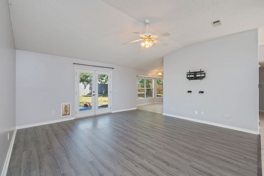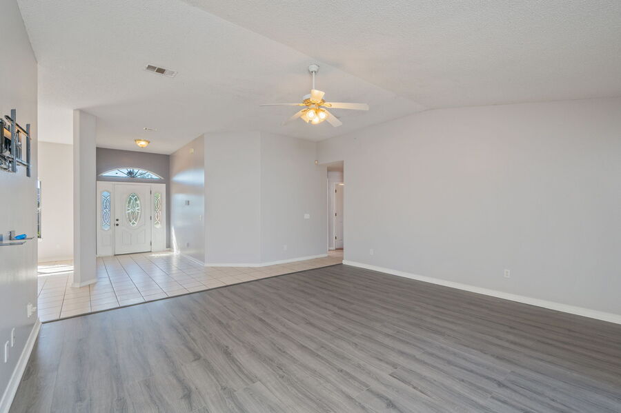 This beautifully designed 4-bedroom, 2-bath home offers a spacious and comfortable layout with exceptional features throughout. The open floor plan includes vaulted ceilings, tile and luxury plank vinyl wood flooring in the main living areas, and ceiling fans in every bedroom for added comfort.